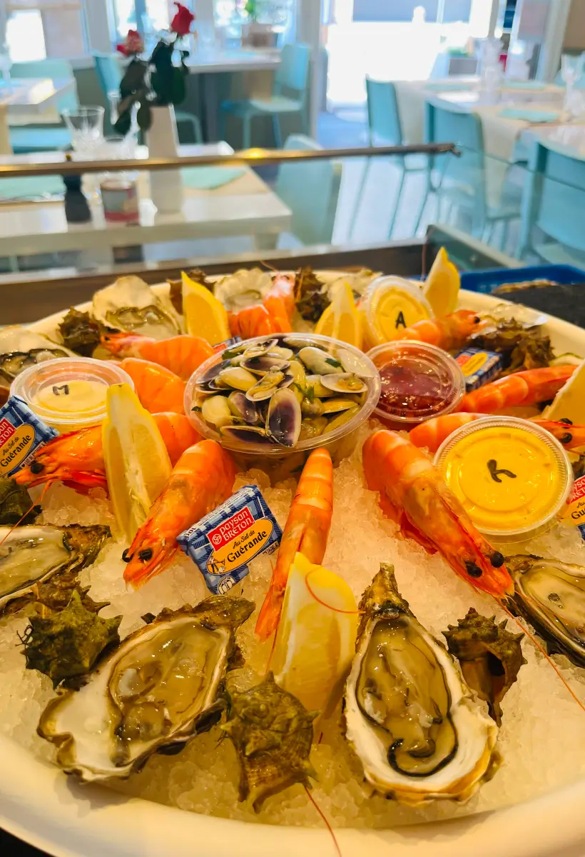 Dégustez vos plateaux de fruits de mer devant l’horizon pour un moment d’évasion.