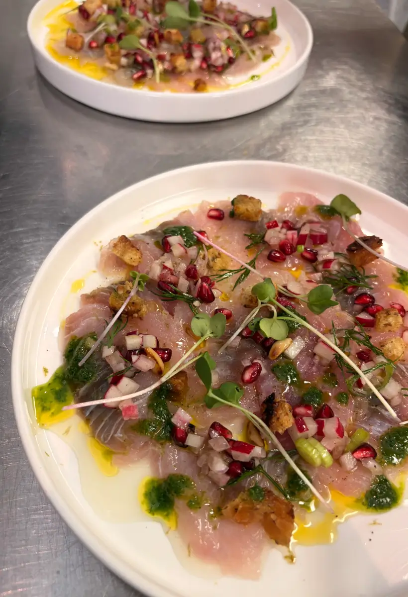 En cuisine, la cheffe Charlène sublime les poissons ultra-frais, qu’ils soient préparés crus, cuits entiers ou en filets. Vous pourrez également composer vos propres plateaux de fruits de mer directement depuis notre vitrine ou simplement déguster quelques huîtres, des oursins en saison, du homard ou de la langouste.